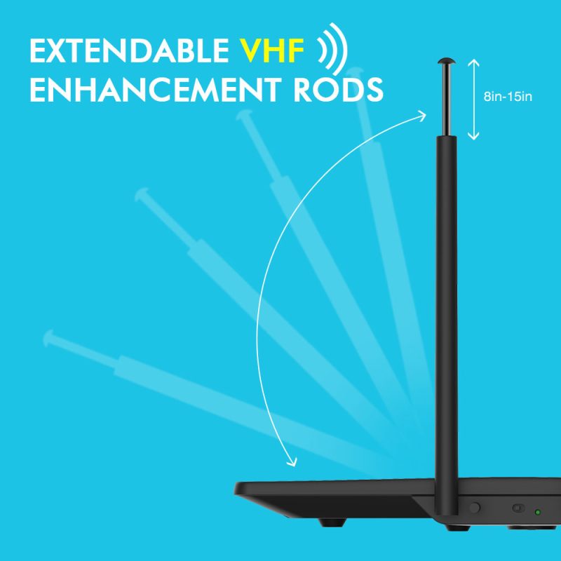• Detachable VHF Enhancement Rods to strengthen VHF reception (Ch. 2-13)