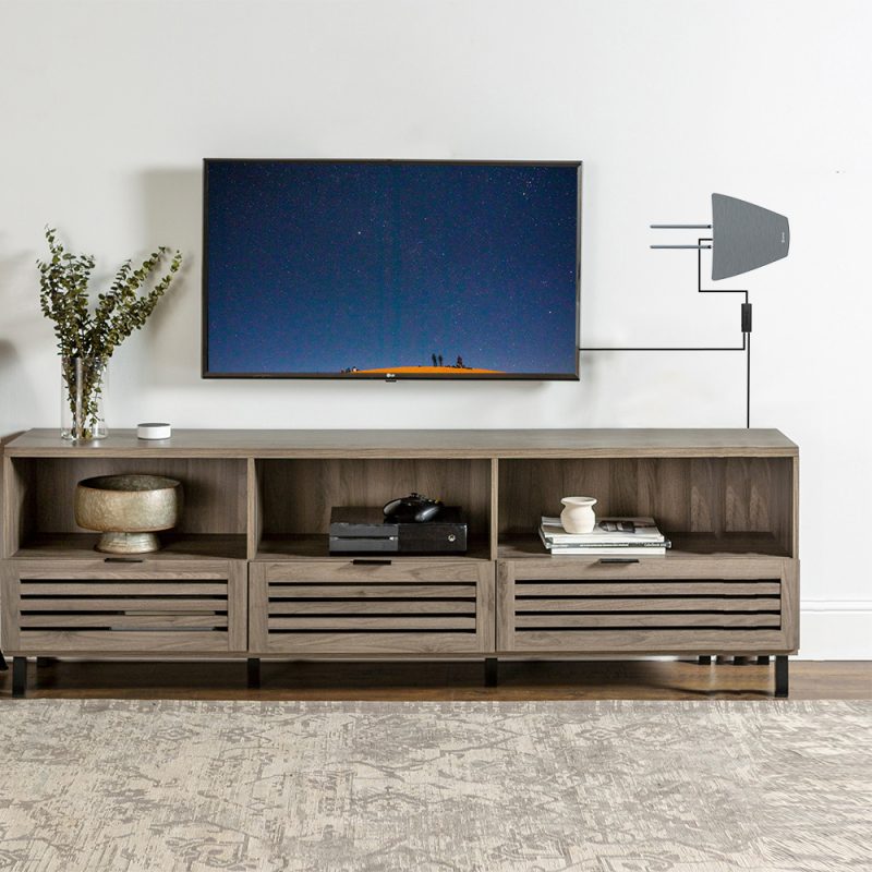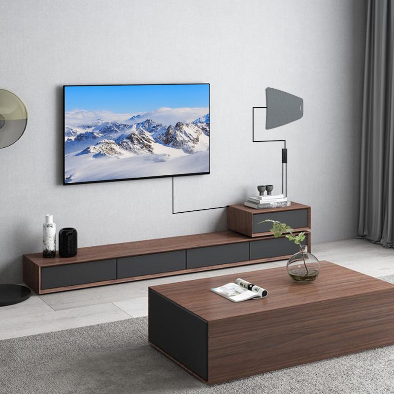 The Antop Aero + AT-221BV’s Indoor HDTV antenna is Smartpass amplified and boasts a range of up to 65 miles. Detachable VHF Enhancement Rods allow for multi-directional reception and helps to strengthen VHF reception for channels 2-13. It’s modern panel design with hair-line finish is aesthetically pleasing and suitable to match a wide range of home décor styles and can be installed in various locations around your home: on a wall or on a tabletop. The Aero + supports HDTV, 1080P TV and 4K ULTRA HD and is compatible with TV converter boxes or digital TVs.