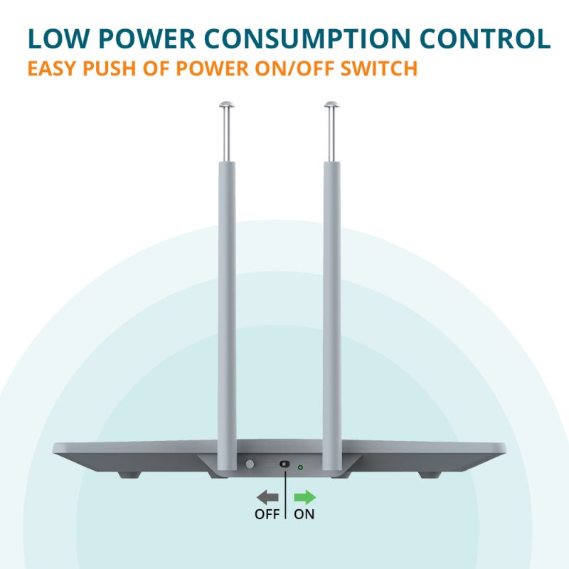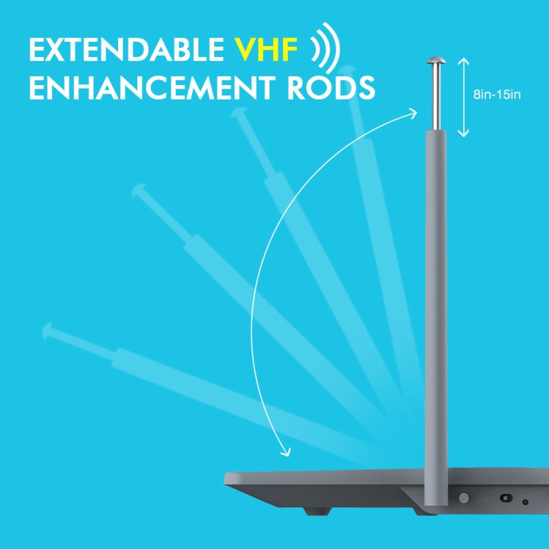 • Detachable VHF Enhancement Rods to strengthen VHF reception (Ch. 2-13)