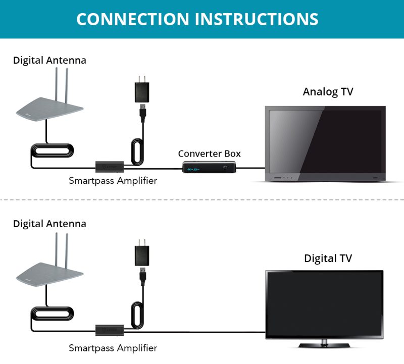 • Smartpass Amplifier, exclusive Antop technology, uses an all-in-one design allowing easier connection while delivering the correct balance between short- and long-range reception.