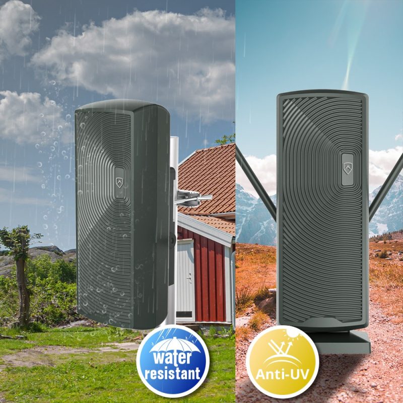 The antenna’s weather resistant UV coated exterior and internal anti-interference technology protects
