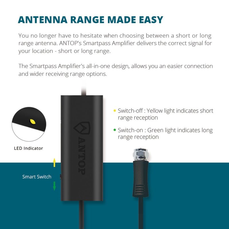 Antop Mini “Big Boy” AT-406BV Dark Grey Indoor/Outdoor Amplified HDTV Antenna