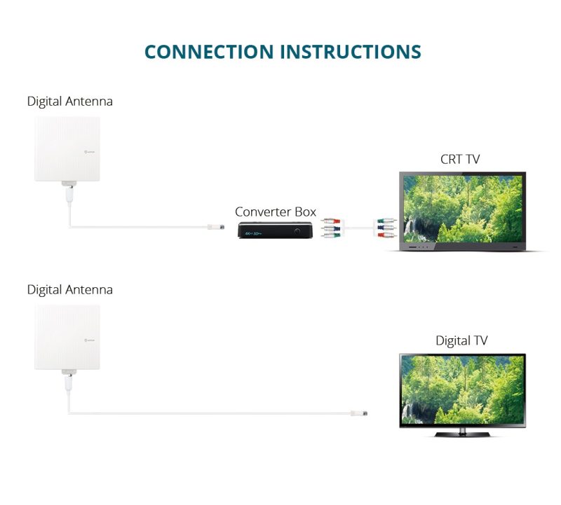 NOTE: Antenna effectiveness is influenced by the distance from signal origination point, station signal strength, antenna positioning, reflections from nearby structures and any power consumption sources. The amount of free over-the-air channels you can receive will vary by area and antenna selection, check signal availability at Antop Signalmaps.