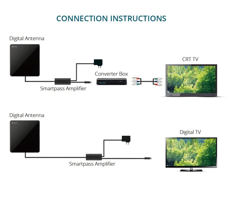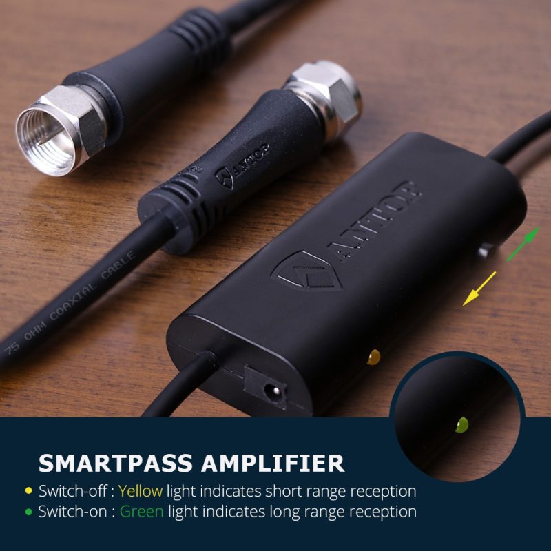 The Smartpass Amplifier‘s all-in-one design allows easier connection, delivers correct balance between short and long range reception. It must be powered in order to function. Push the smart switch On or Off and select the switching with which more channels are received.