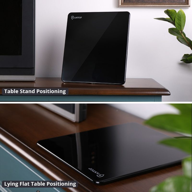 The Antop Flat-Panel AT-206B designed in Piano Black is aesthetically pleasing and suitable to match a wide range of home décor styles. Its compact size allows you to position the antenna anywhere in your home. The AT-206B supports HDTV, 1080P TV and 4K ULTRA HD and is compatible with TV converter boxes or digital TVs.