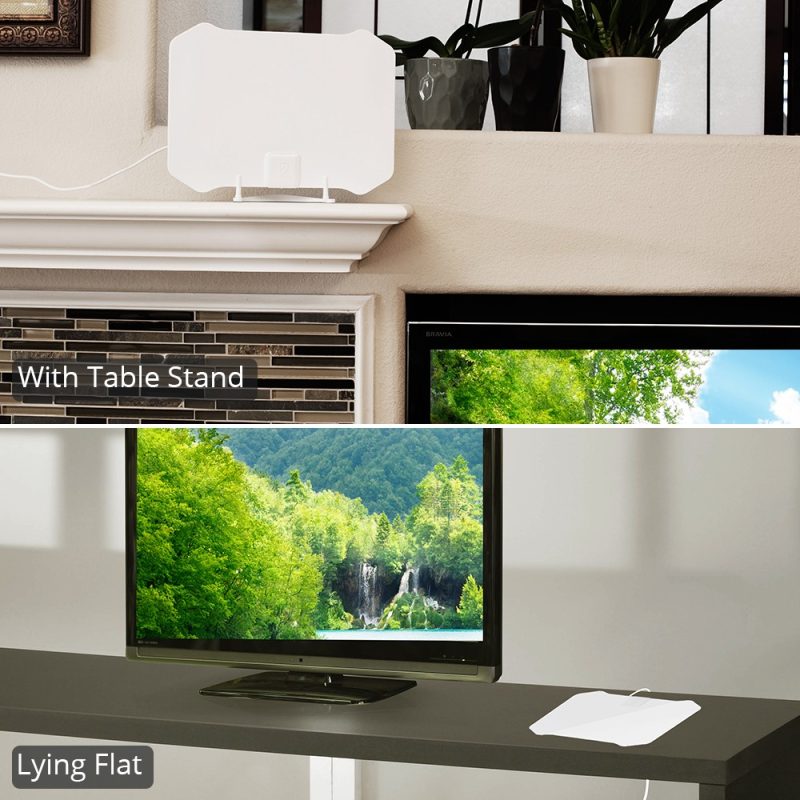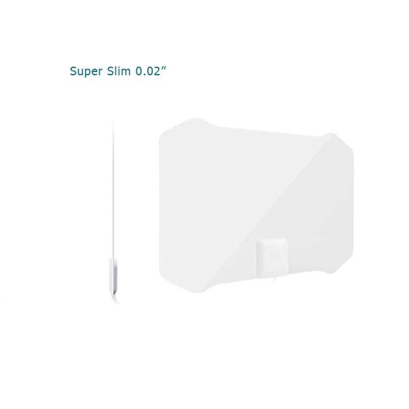 The Antop Paper Thin Indoor HDTV Antenna, AT-133 super slim design (less than an inch thick, 0.02’) is aesthetically pleasing and suitable to match a wide range of home décor styles. Its compact size allows you to position the antenna anywhere in your home. The AT-133 supports HDTV, 1080P TV and 4K ULTRA HD and is compatible with TV converter boxes or digital TVs.