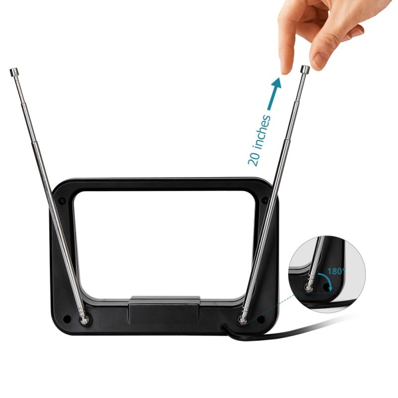 The Antop Ring Indoor HDTV Antenna, AT-210 in Hairline Black is aesthetically pleasing and suitable to match a wide range of home décor styles. The AT-210 supports HDTV, 1080P TV and 4K ULTRA HD and is compatible with TV converter boxes or digital TVs.