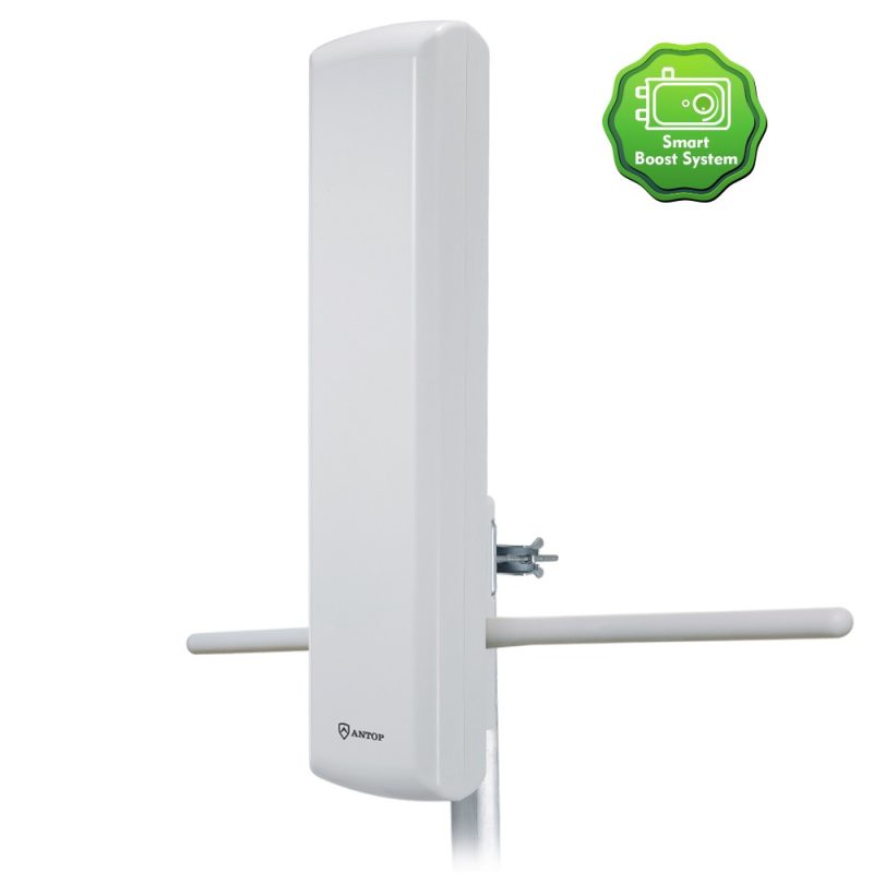 Antop SBS-802 HD Smart Panel: HDTV FM Amplified Antenna with Smart Boost System, 85 mile range, White