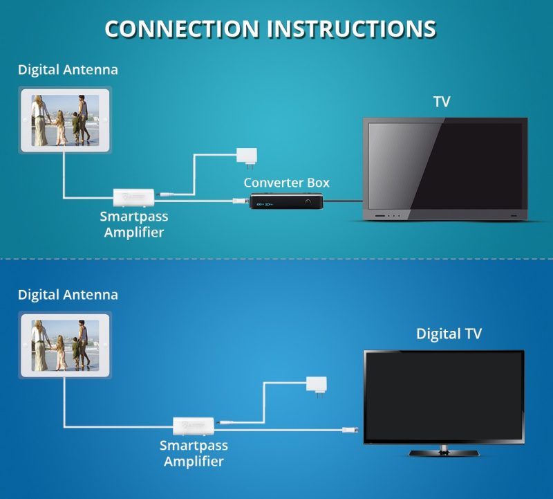 The Smartpass Amplifier‘s all-in-one design allows easier connection, delivers correct balance between short and long range reception. It must be powered in order to function. Push the smart switch On or Off and select the switching with which more channels are received.