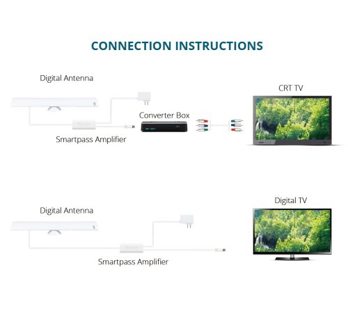 The Smartpass Amplifier‘s all-in-one design allows easier connection, delivers correct balance between short and long range reception. It must be powered in order to function. Push the smart switch On or Off and select the switching with which more channels are received.
