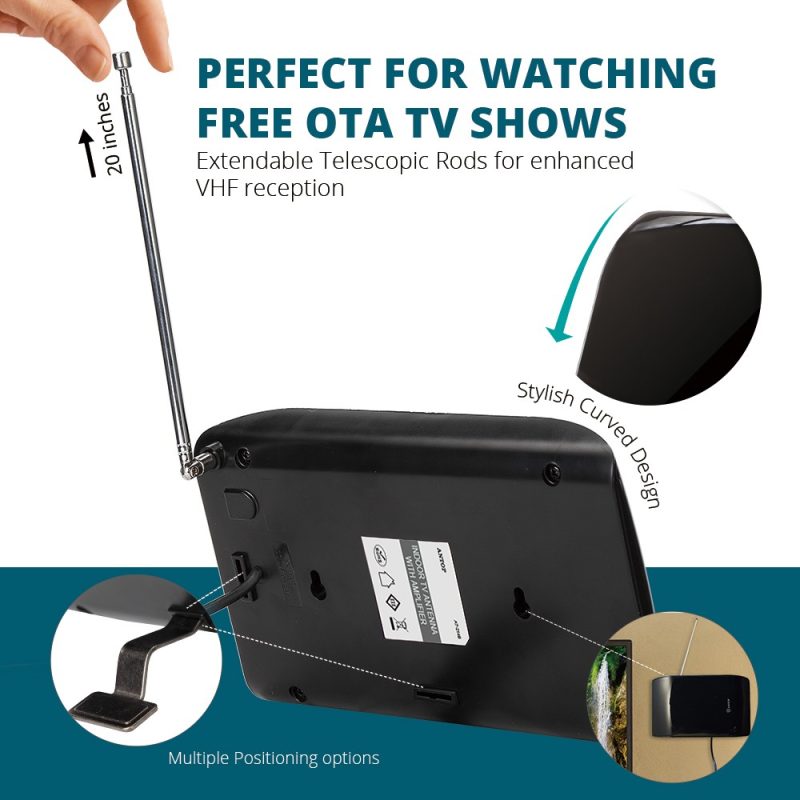 2) 4G LTE Filter, blocks 3G and 4G wireless signals for noise-free digital reception.3) Adjustable telescopic rod antennas for optimum VHF reception.