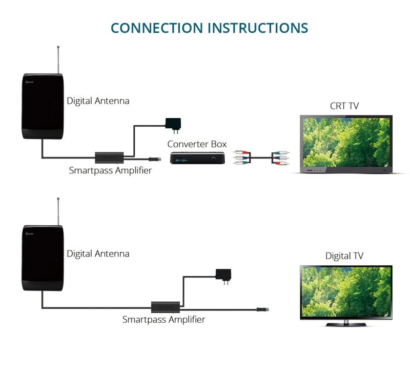 The Smartpass Amplifier’s all-in-one design allows easier connection, delivers correct balance between short and long range reception. It must be powered in order to function. Push the smart switch On or Off and select the switching with which more channels are received.