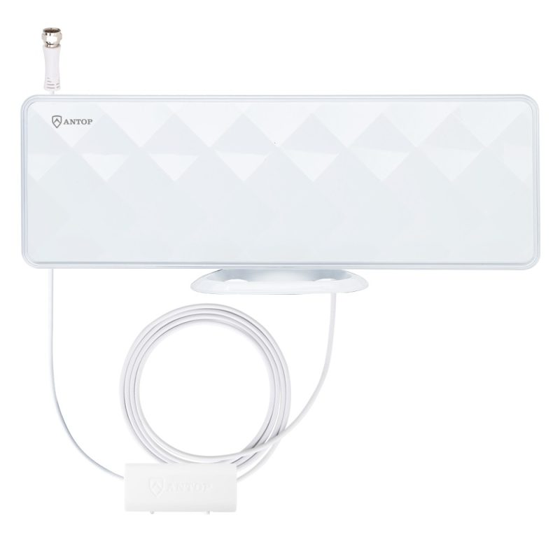 The Antop Flat-Panel AT-201B diamond-cut design is aesthetically pleasing and suitable to match a wide range of home décor styles. Its compact size allows you to position the antenna anywhere in your home. The AT-201B supports HDTV, 1080P TV and 4K ULTRA HD and is compatible with TV converter boxes or digital TVs.