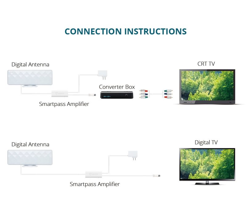 The Smartpass Amplifier’s all-in-one design allows easier connection, delivers correct balance between short and long range reception. It must be powered in order to function. Push the smart switch On or Off and select the switching with which more channels are received.