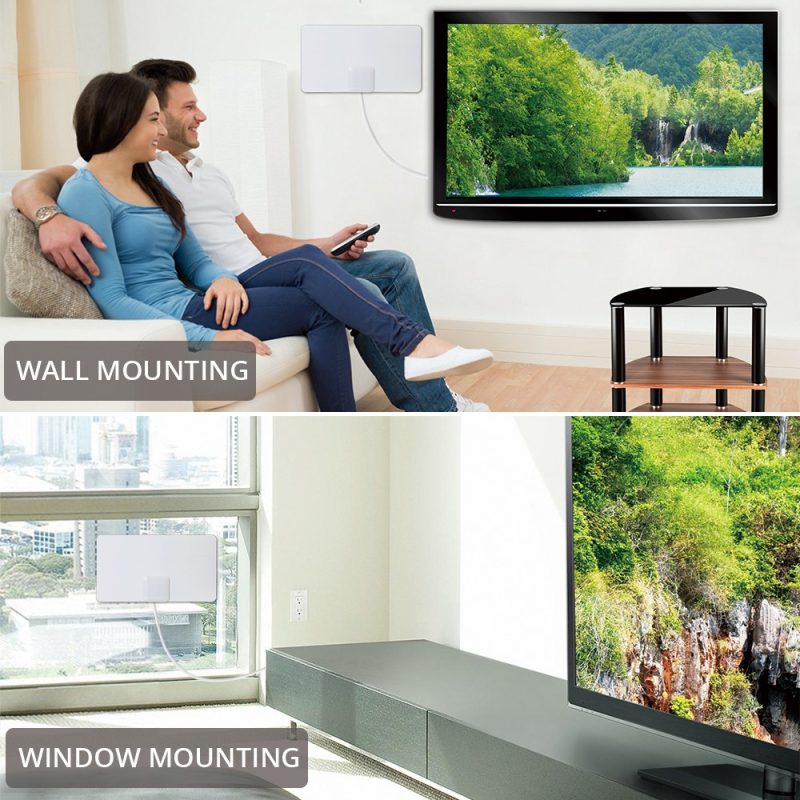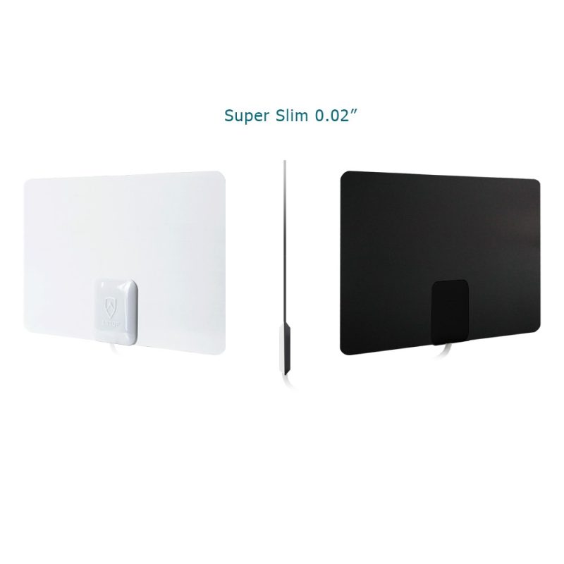 The Antop Paper Thin Indoor HDTV Antenna, AT-103B super slim and Reversible White and Black design (less than an inch thick, 0.02’) is aesthetically pleasing and suitable to match a wide range of home décor styles. Its compact size allows you to position the antenna anywhere in your home. The AT-103B supports HDTV, 1080P TV and 4K ULTRA HD and is compatible with TV converter boxes or digital TVs.