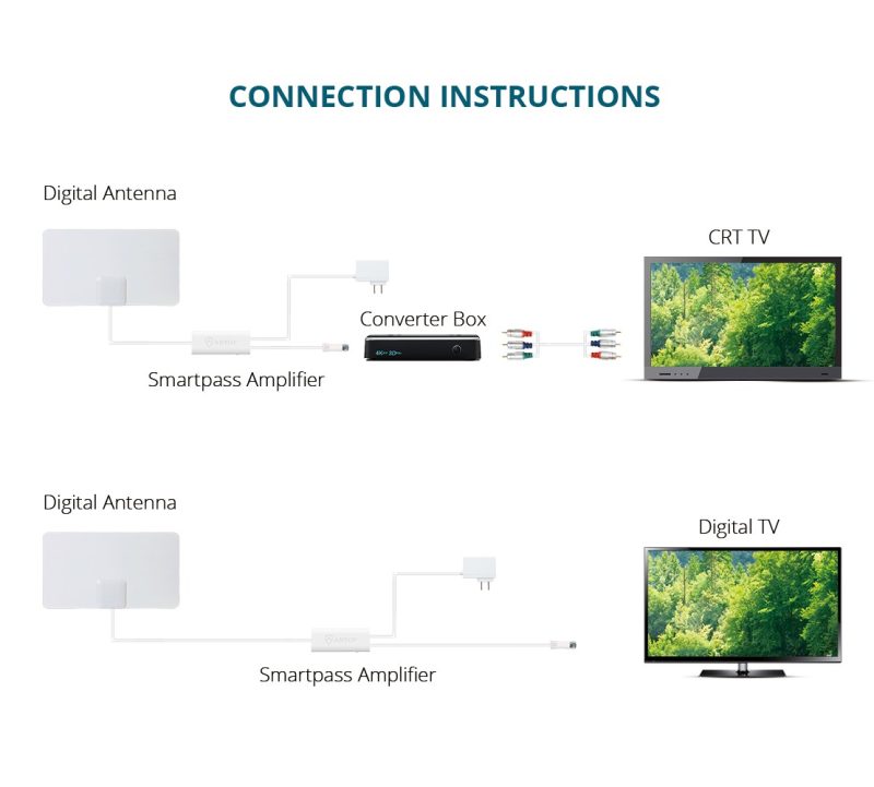 The Smartpass Amplifier’s all-in-one design allows easier connection, delivers correct balance between short and long range reception. It must be powered in order to function. Push the smart switch On or Off and select the switching with which more channels are received.
