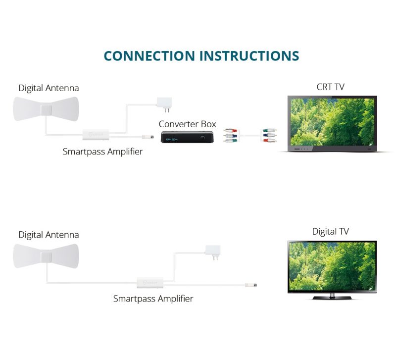 The Smartpass Amplifier’s all-in-one design allows easier connection, delivers correct balance between short and long range reception. It must be powered in order to function. Push the smart switch On or Off and select the switching with which more channels are received.