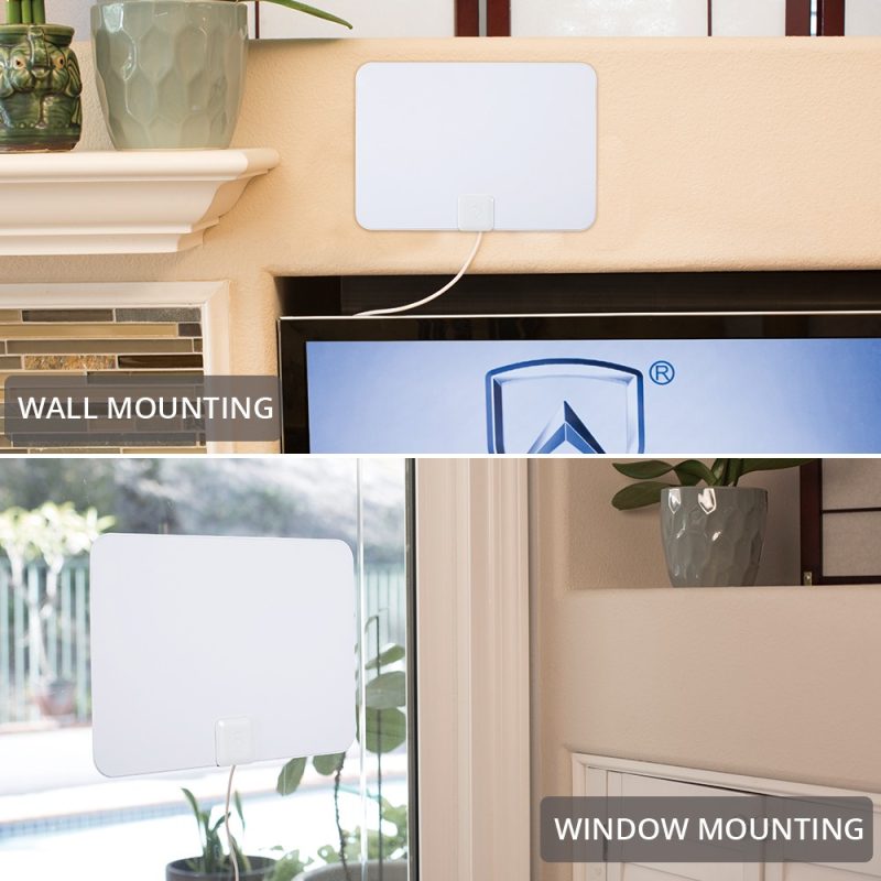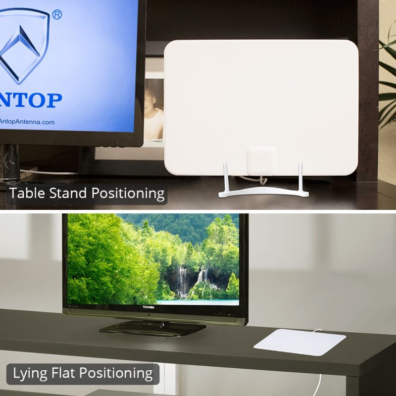 The Antop Paper Thin Indoor HDTV Antenna, AT-106B super slim and Reversible White and Black design (less than an inch thick, 0.02’) is aesthetically pleasing and suitable to match a wide range of home décor styles. Its compact size allows you to position the antenna anywhere in your home. The AT-106B supports HDTV, 1080P TV and 4K ULTRA HD and is compatible with TV converter boxes or digital TVs.