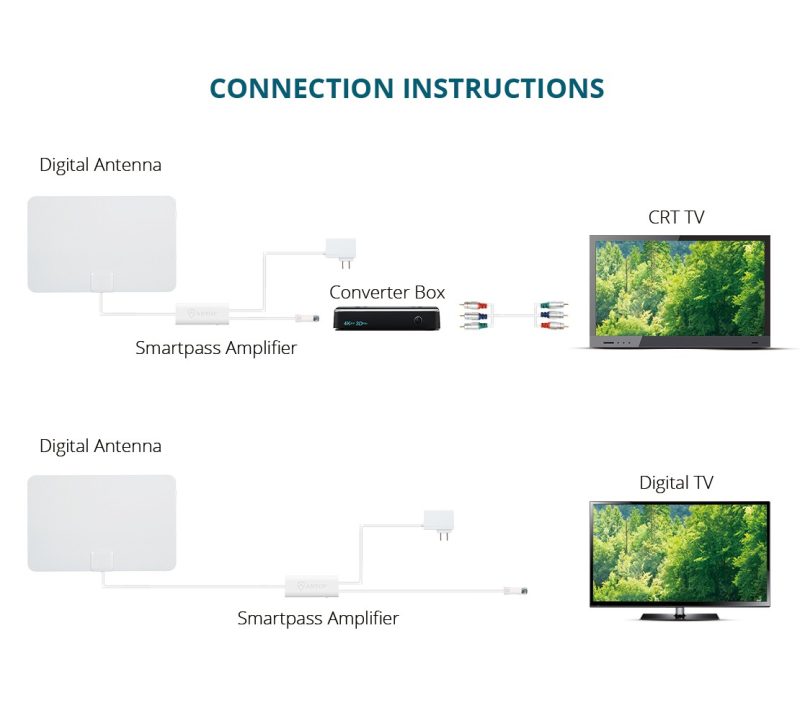 The Smartpass Amplifier’s all-in-one design allows easier connection, delivers correct balance between short and long range reception. It must be powered in order to function. Push the smart switch On or Off and select the switching with which more channels are received.