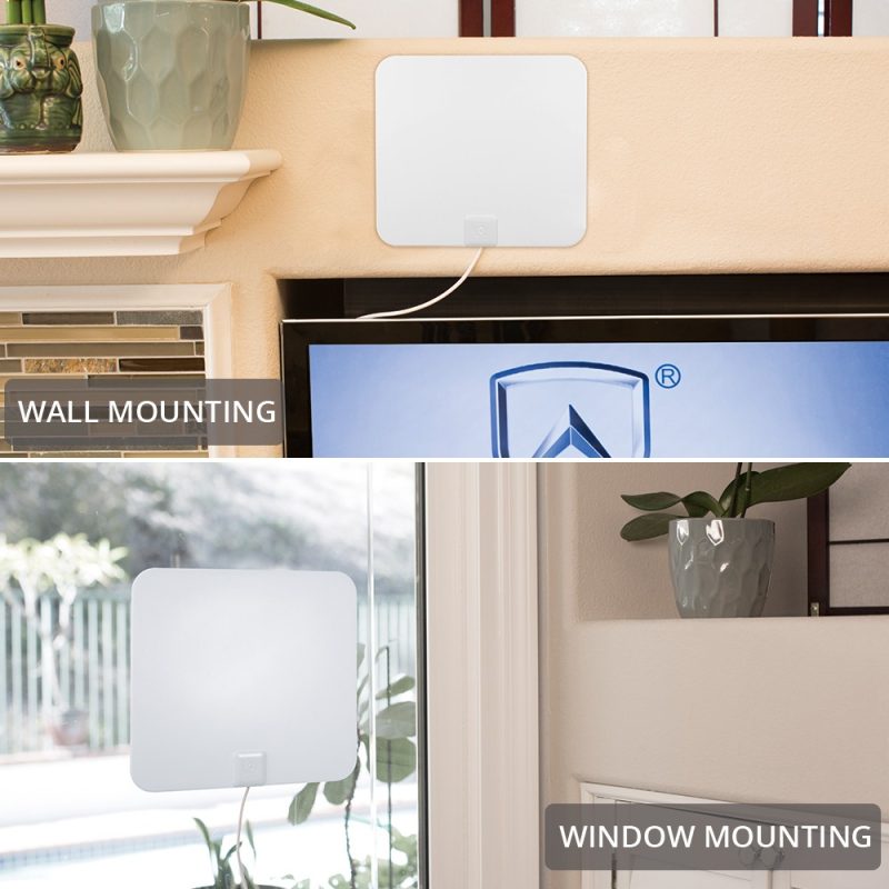 I am about 35 miles from the major tv towers and have been operating with cheap rabbit ears for the last several years. After seeing this at a friends house, I decided to replace a broken set of directional rabbit ears. It was a great decision. I stuck the antenna to a window next to the tv. You can’t even see it from inside. The window is on the back side of my house, but even then it doesn’t look too bad.