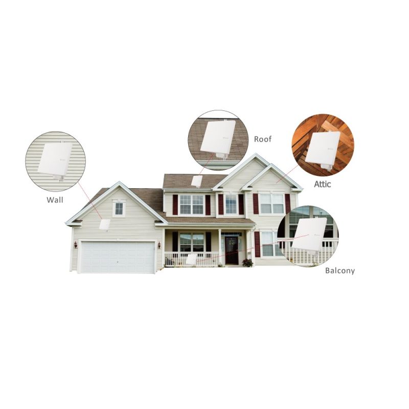 The Antop Flat-panel AT-413B slim-panel design is aesthetically pleasing and suitable to match a wide range of home exterior styles. The Omni-directional reception and UV coating and weather resistant finish, allows you to install your AT-413B antenna in various locations around the exterior of your home: wall, roof, balcony.In addition to home use the Omni-directional signal reception makes the AT-413B perfect for mobile homes and RV usage. The AT-413B supports HDTV, 1080P TV and 4K ULTRA HD.