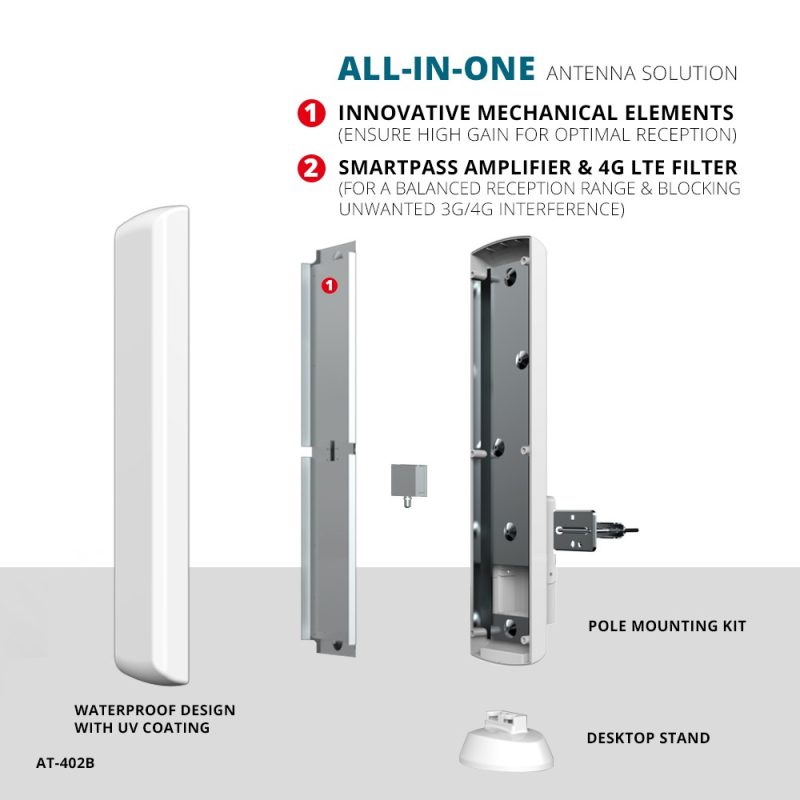 – AT-402B FLAT PANEL Smartpass Amplified Digital Outdoor/Indoor TV Antenna