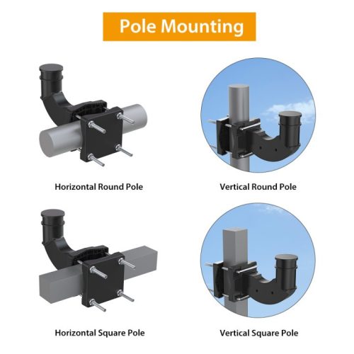 · Compatible with round (Ø1.0-2.4in) and square (Ø1.0-2.2in) pole applications.